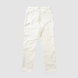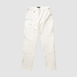 Relaxed fit, 4-pocket pant constructed of 11.5 oz raw selvedge denim. Featuring custom Brownstone metal hardware including tack button waist closure with cast D-ring and rivets. Reinforced slack panel knee patterns.