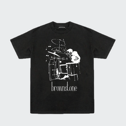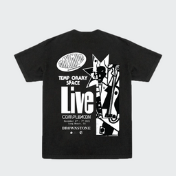 Short sleeve, boxy, loose fit tee constructed from Japanese cotton. Ribbed neckline. "Giant Steps" graphic print at chest. Complexcon 2021 graphic printed on back. Official Brownstone silicon hangtag.