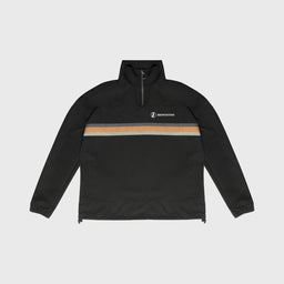 Dropped shoulder water resistant track top. Long sleeves, stand collar, elastic cuffs, and front welt pockets with a 7" Riri zip neck opening. Striped grosgrain and printed Brownstone face logo at chest. Drawcord toggle hem finish. Official Brownstone silicon hangtag.